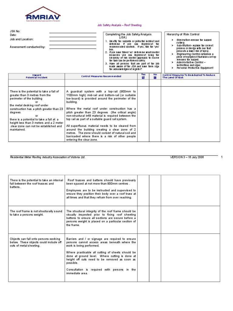 Jsa for roof work.