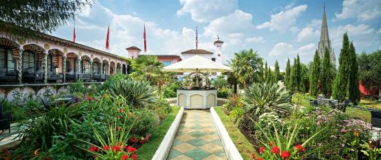 The rest of the roof has a variety of gardens colonnades some with seating and a variety of architectural styles.